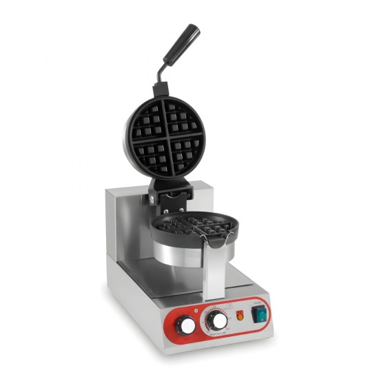 Επαγγελματική βαφλιέρα με αντικολλητικές αποσπώμενες πλάκες για ευκολία στις παρασκευές βάφλας και για την συντήρηση και το καθάρισμα. Κατασκευασμένη από ανοξείδωτο ατσάλι 201στα 0.7mm. Eύρος θερμοκρασίας από 50-300°C και περιστροφικό σύστημα για ομοιόμορφο ψήσιμο. Επιφάνεια ψησίματος ø190. Μέγεθος δίσκου 176mm. Ιδανική για καφέ, ζαχαροπλαστεία, καταστήματα με βάφλα-κρέπα-παγωτό, μπαρ και ξενοδοχεία.