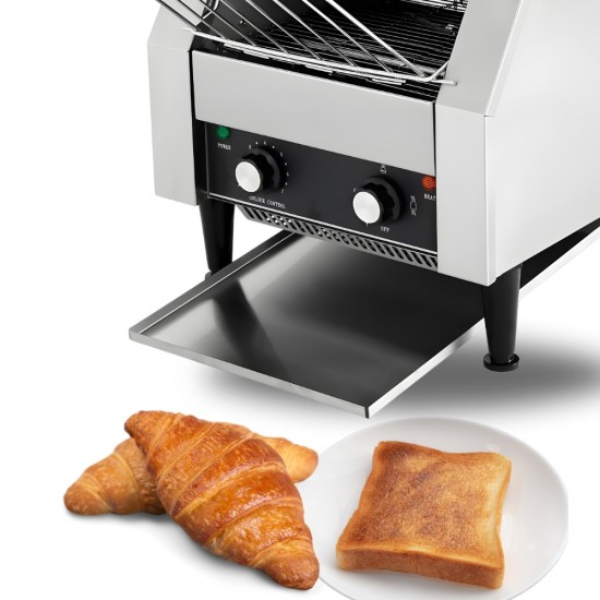 Made of stainless steel with double sided baking options and adjustable transfer speed. Standby mode to save energy. Ideal for toasting sliced bread, buns, croissants and pastries.