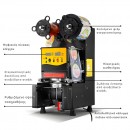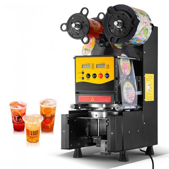 Πλήρως αυτόματη μηχανή σφράγισης κυπέλλων PP και χάρτινα. Με κινητήρα χωρίς ψήκτρες και υψηλή ταχύτητα σφράγισης μπορεί να σφραγίσει 450-600 κύπελλα ανά ώρα. Μπορούν να χρησιμοποιηθούν υλικά στεγανοποίησης Πλαστικό/Χάρτινο Κύπελλο, PE, PC, PC. Με λειτουργία Hand/Auto και αυτόματο σύστημα καταμέτρησης, το οποίο μπορεί να υπολογίσει τις πωλήσεις ανά ημέρα, αλλά μετά από μια ημέρα πωλήσεων, χρειάζεται επαναφορά. Ηλεκτρονικό σύστημα μπορεί να αναγνωρίσει αυτόματα τα σχέδια του περιτυλίγματος σφράγισης, για να διασφαλίσει ότι κάθε σφράγιση θα είναι τέλεια και ενιαία. Ποτηροθήκη από ανοξείδωτο ατσάλι. Σχεδιασμός ακριβείας που διασφαλίζει ότι το στεγανοποιητικό περιτύλιγμα λειτουργεί σταθερά, ενώ μπορεί να ρυθμιστεί. Το μηχάνημα είναι αθόρυβο όταν λειτουργεί. Ιδανικό για Ξηρούς καρπούς, Pop corn, Γλυκά, Freddo drinks, Χυμούς, Φρουτοσαλάτες, Σαλάτες, Γρανίτες, τσάι, Bubble tea, καφέ, mikl shake κ.α.